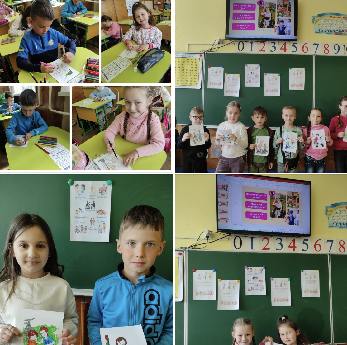 Учні 1-А класу (класний керівник Світлана Стадник) говорили про дружбу, повагу та допомогу. Вчилися бачити й розуміти інших, щоб школа була комфортною для кожного. Малювали, грали й будували простір без бар’єрів!