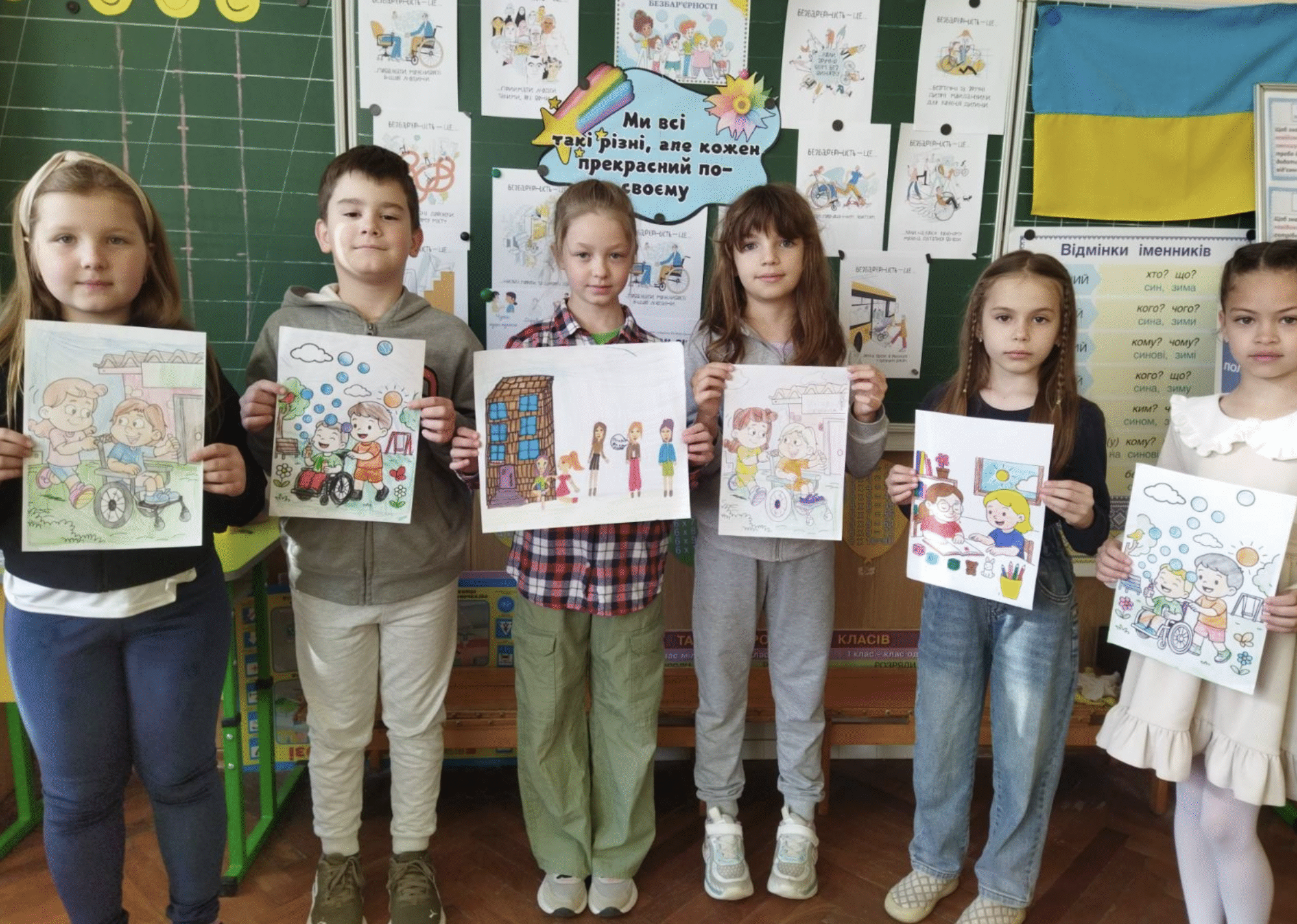 Учні 2-Б класу (класний керівник Оксана Антошик) на уроках ЯДС- образотворче мистецтво міркували над тим, як створити світ без барʼєрів – світ, комфортний, добрий, затишний для всіх.