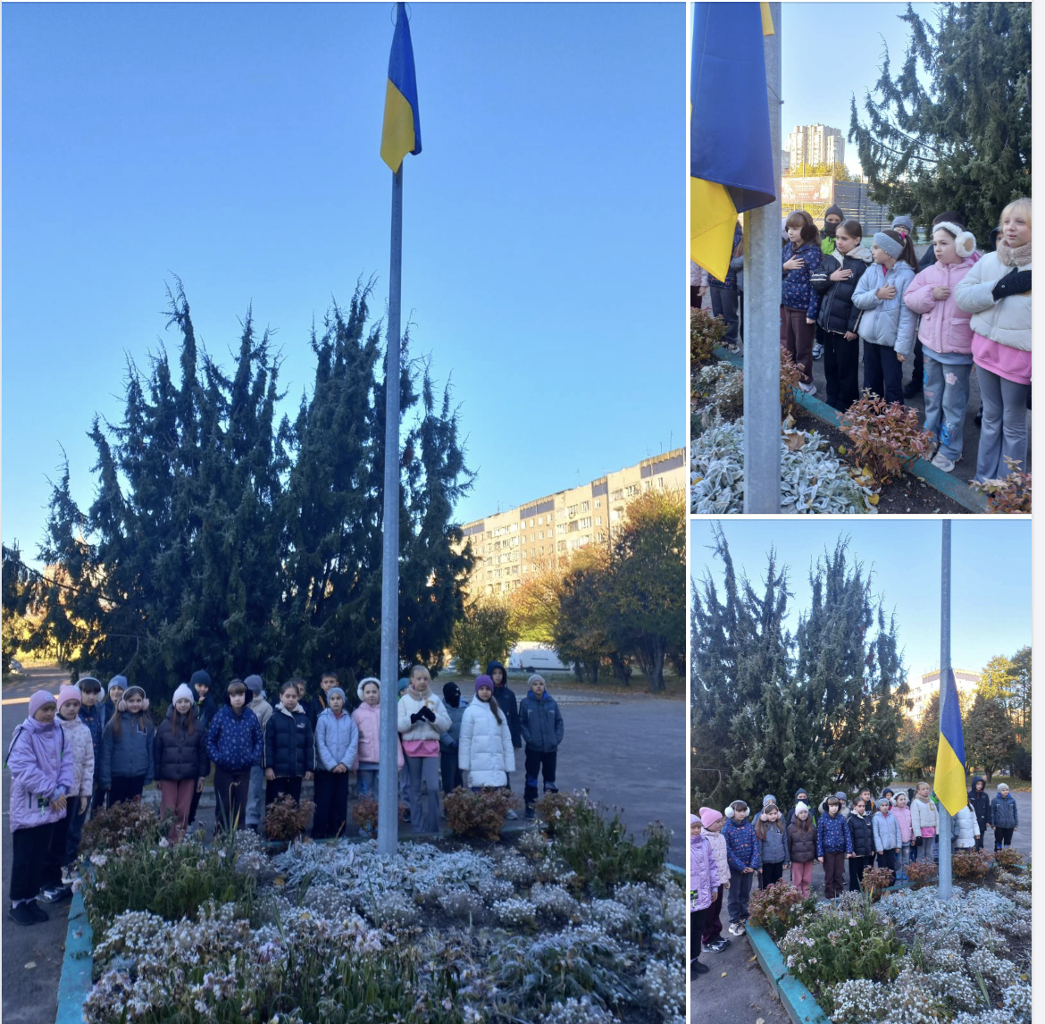 Дотримуючись традиції, учні 4-Г класу, класний керівник Наталя Куземська, розпочали тиждень із почесної місії — підняття Державного Прапора України у шкільному дворі.
