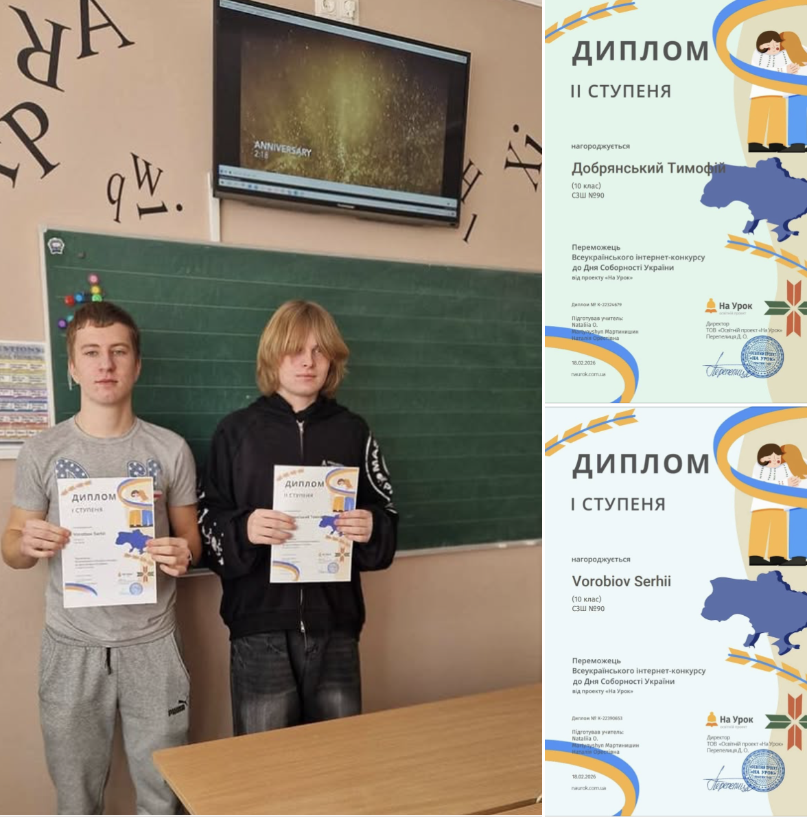 Щиро вітаємо переможців конкурсу до Дня Гідності та Свободи Сергія Воробйова та Тимофія Добрянського, учнів 10-Б класу (учитель англійської мови Наталія Мартинишин) із здобуттям Дипломів І та ІІ ступенів!